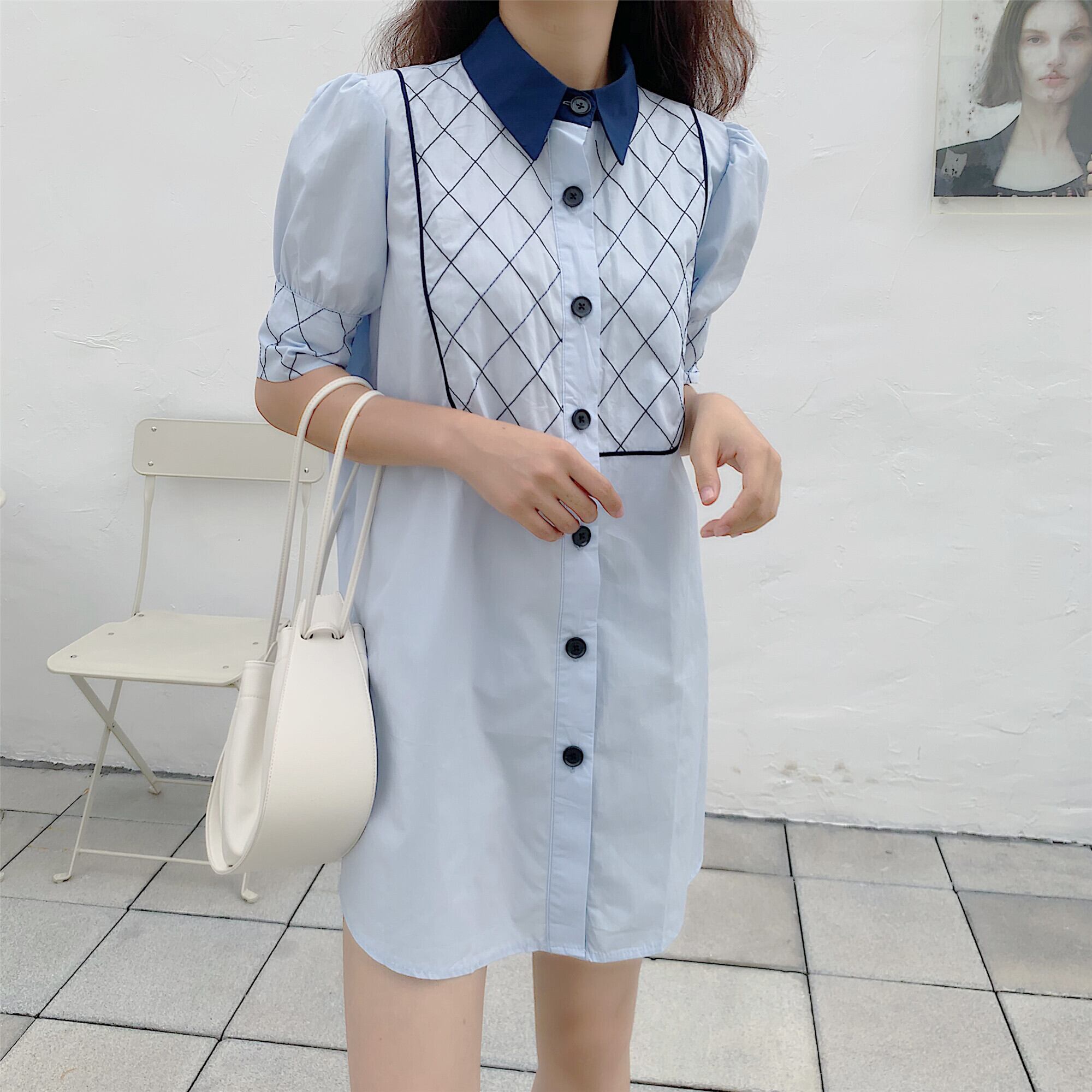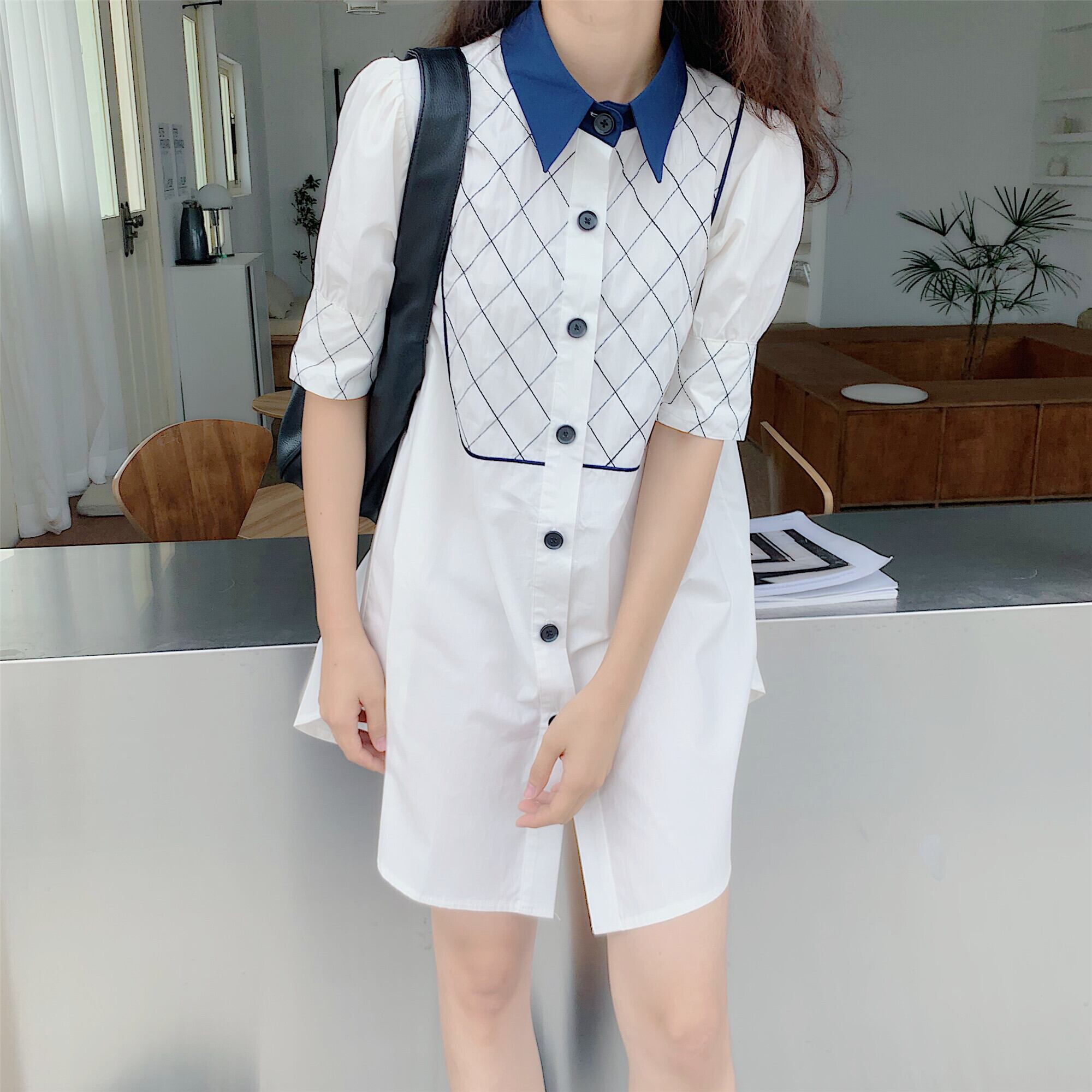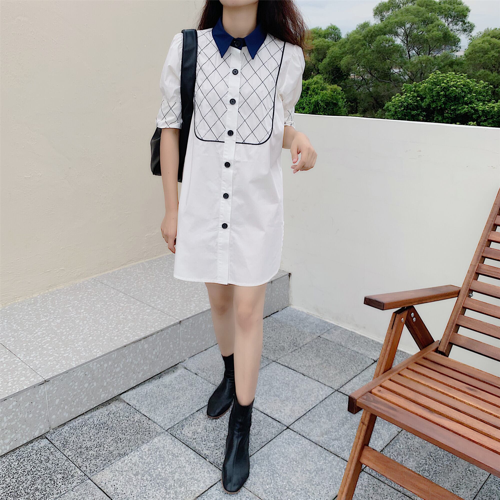ドレス サマーショートスタンダードルーズシャツ スカート レトロ 夏物 韓国婦人15857618701