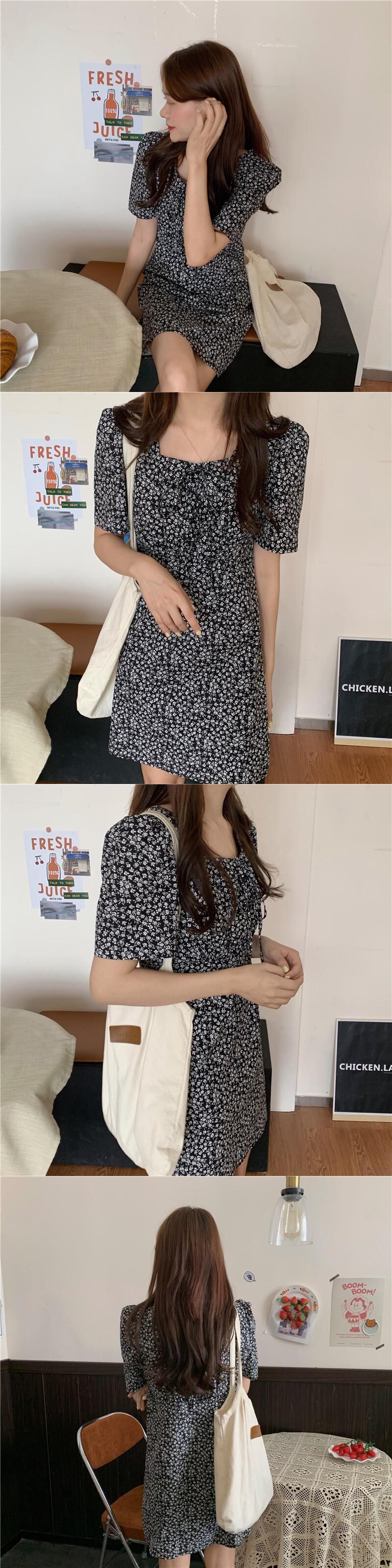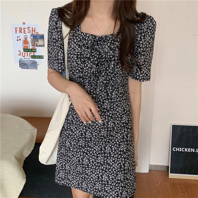 スリムカラーホルターハイウェストウェストフローラルドレス 花柄 スクウェア 韓国婦人46758583866