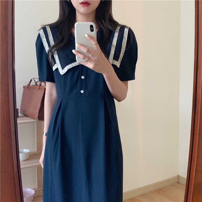 スカート サマーソリッド カラーレースドレス 大人ガーリー スウィート キュート カジュアル 夏物 ソリッドカラー ステッチ 韓国婦人71972241042