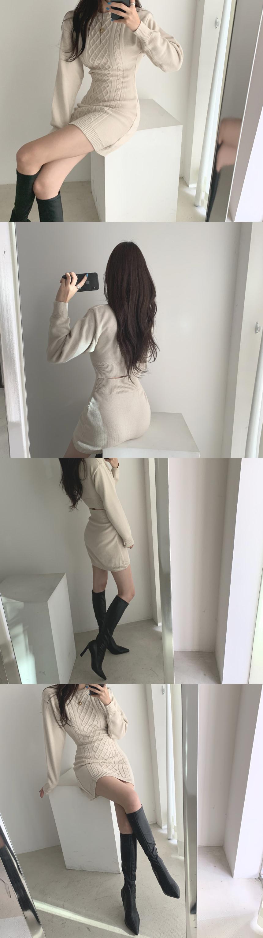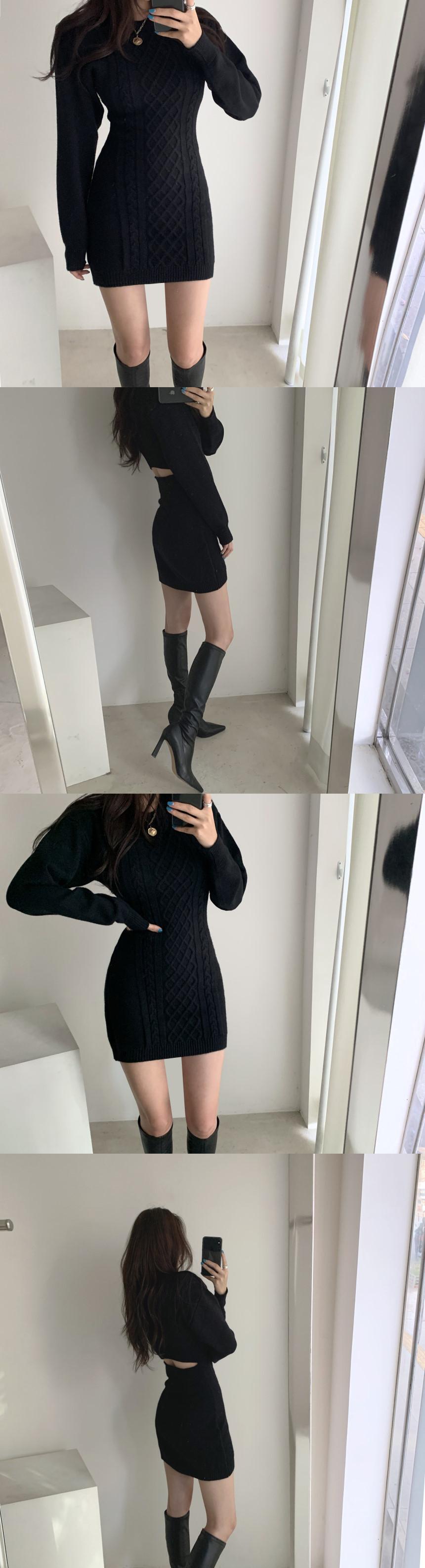スプリングオータムラウンドネックパターンバックスリムニットドレス レディース 春物 秋物 Oネック 韓国婦人24810459880