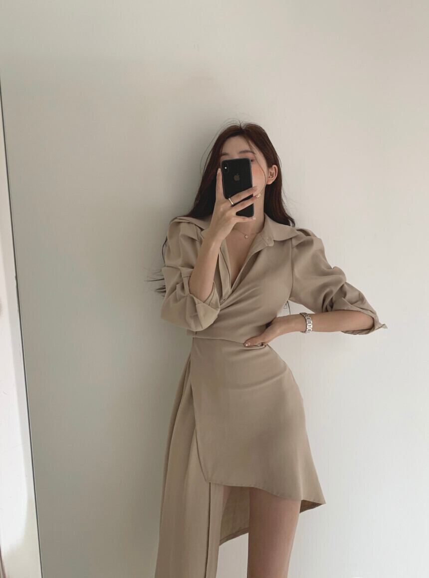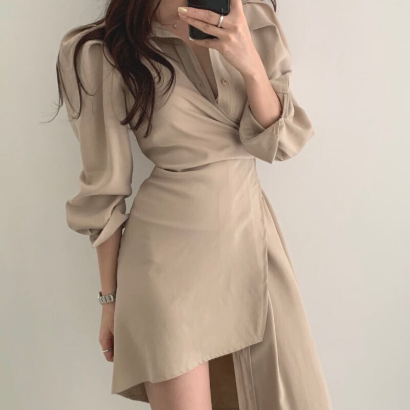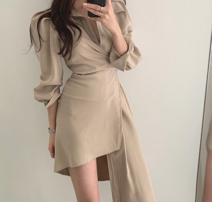 スプリングオータムスタンダードウェストドレス レディース レトロ エレガント 春物 秋物 韓国婦人84196839754
