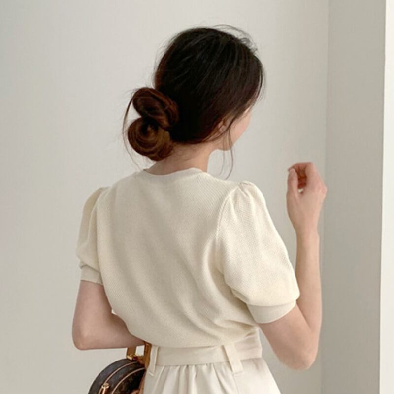 サマースタイルスリーブブラウス ショートスリムセーター 夏物 シルク 韓国婦人52731954053