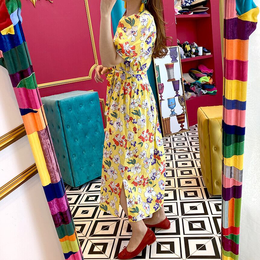 スカート サマープリント柄ウェストカラードレス ロングレディース 大人ガーリー スウィート キュート カジュアル 夏物 スクウェア 韓国婦人66546029743