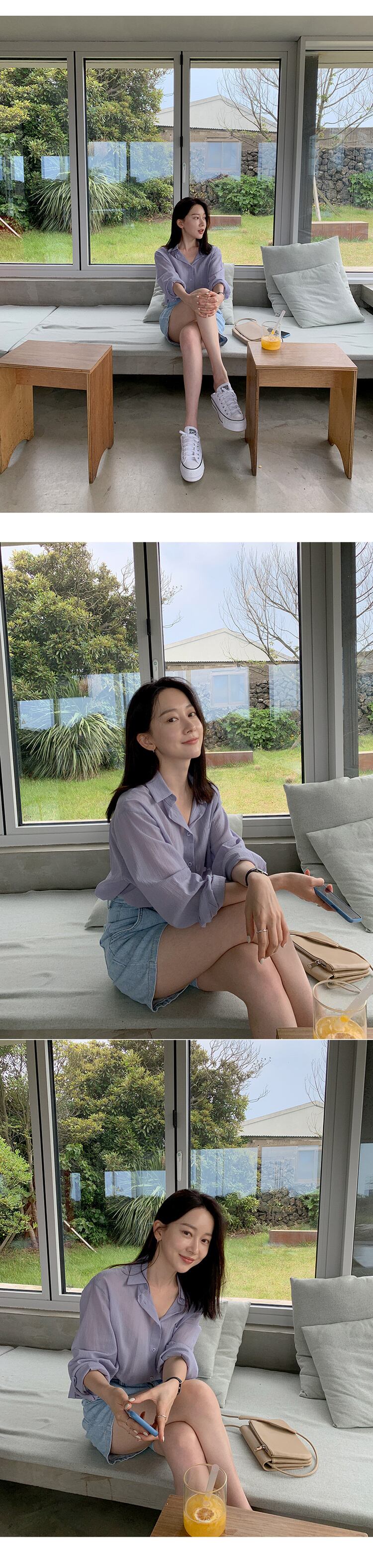 シフォンシャツ レディースサマースタイルブラウス 薄手 ロング 夏物 パープル 韓国婦人3634596108