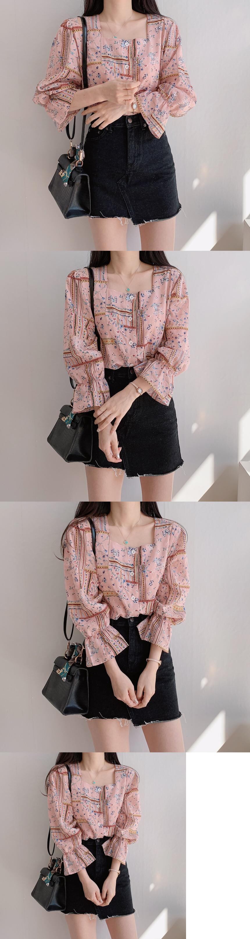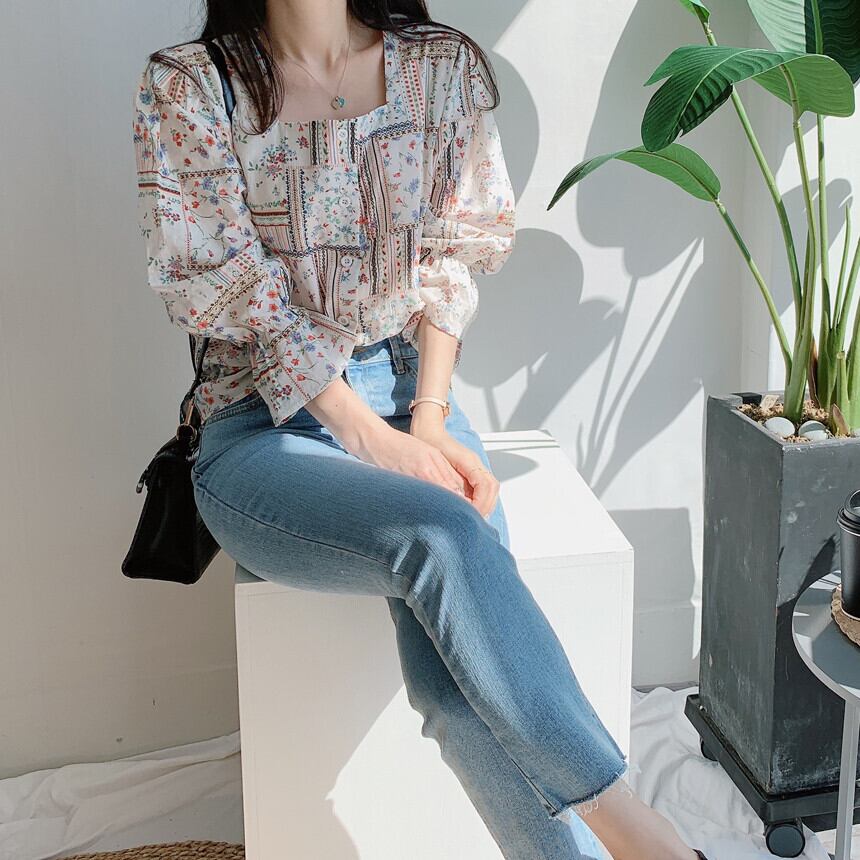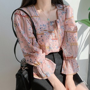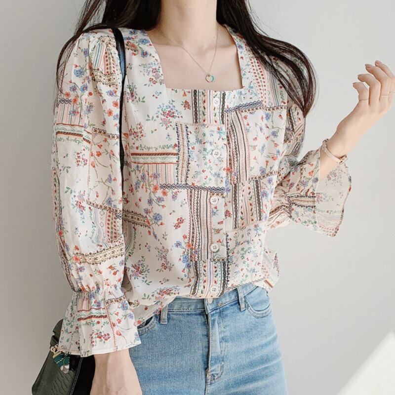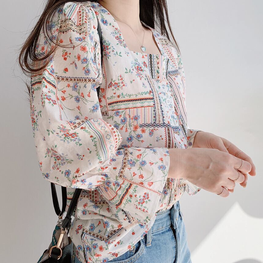 オータムスタイルフローラルシャツ レディース ロング 秋物 花柄 スクウェア 韓国婦人41284877676