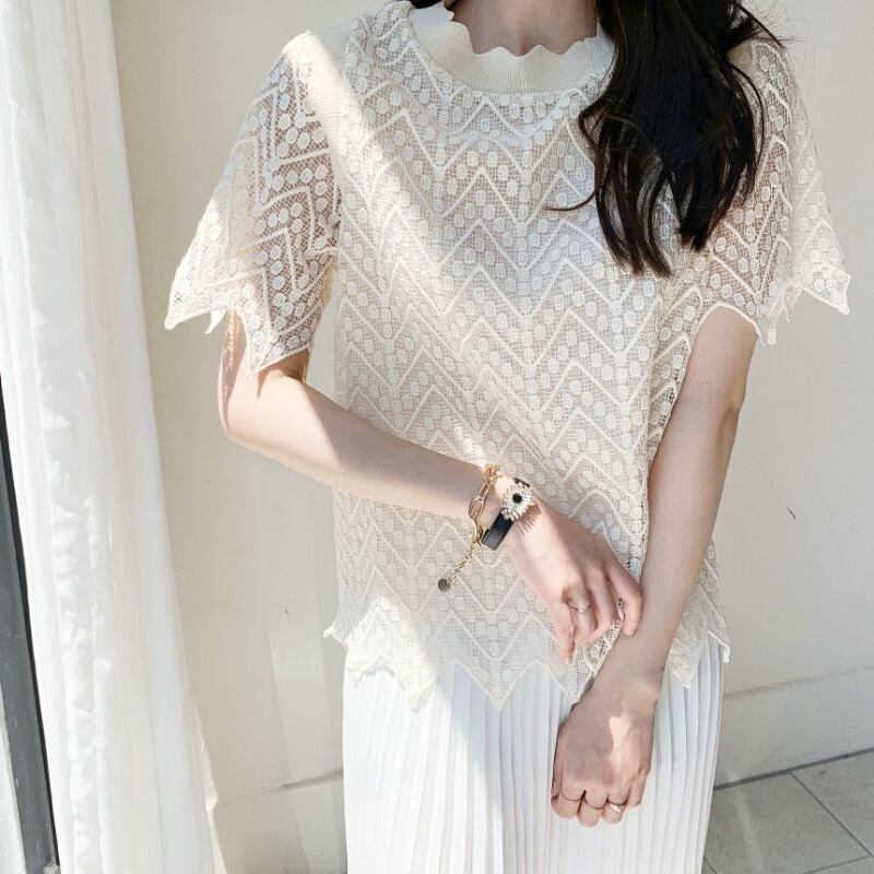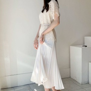 カラーレース薄手シャツ ハイウェストプリーツスカート 韓国婦人79104344087