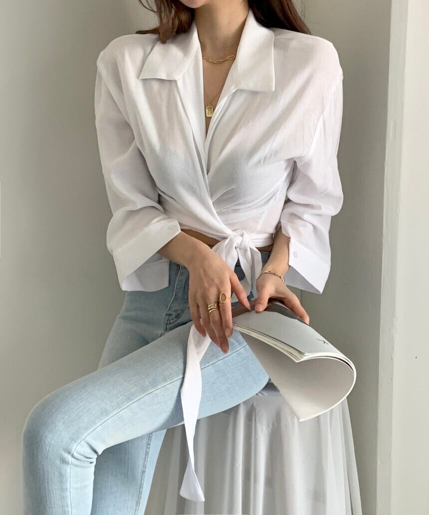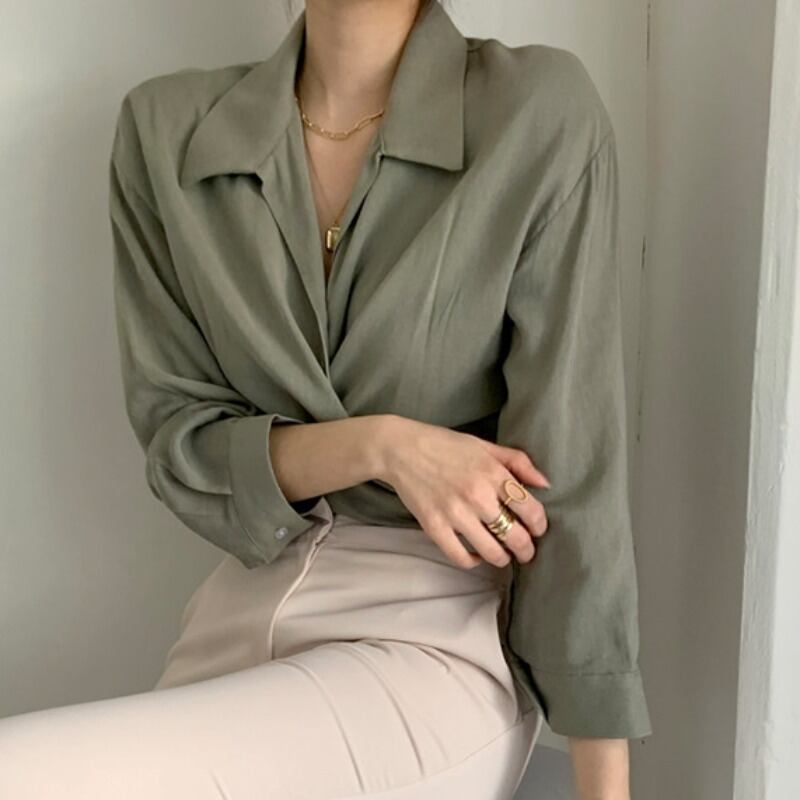 オータムクロススリーブカジュアルシャツ レディース 秋物 韓国婦人41612548169