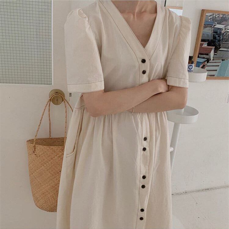 サマースタイルVネック薄手ルーズスリーブドレス レディース 夏物 韓国婦人26439820913