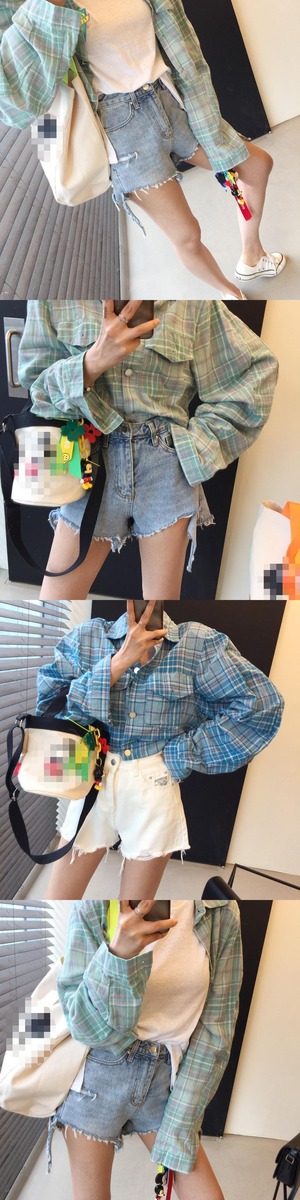 オータムスタイルルーズショート格子柄シャツ トップス レディース ロング 秋物 韓国婦人14297194193
