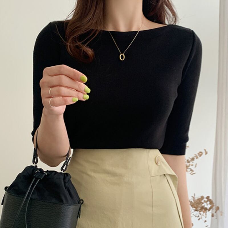 サマースタイルブラウス 薄手Tシャツ シャツ スリムプルオーバー セーター レディース 夏物 シルク 韓国婦人98307907011