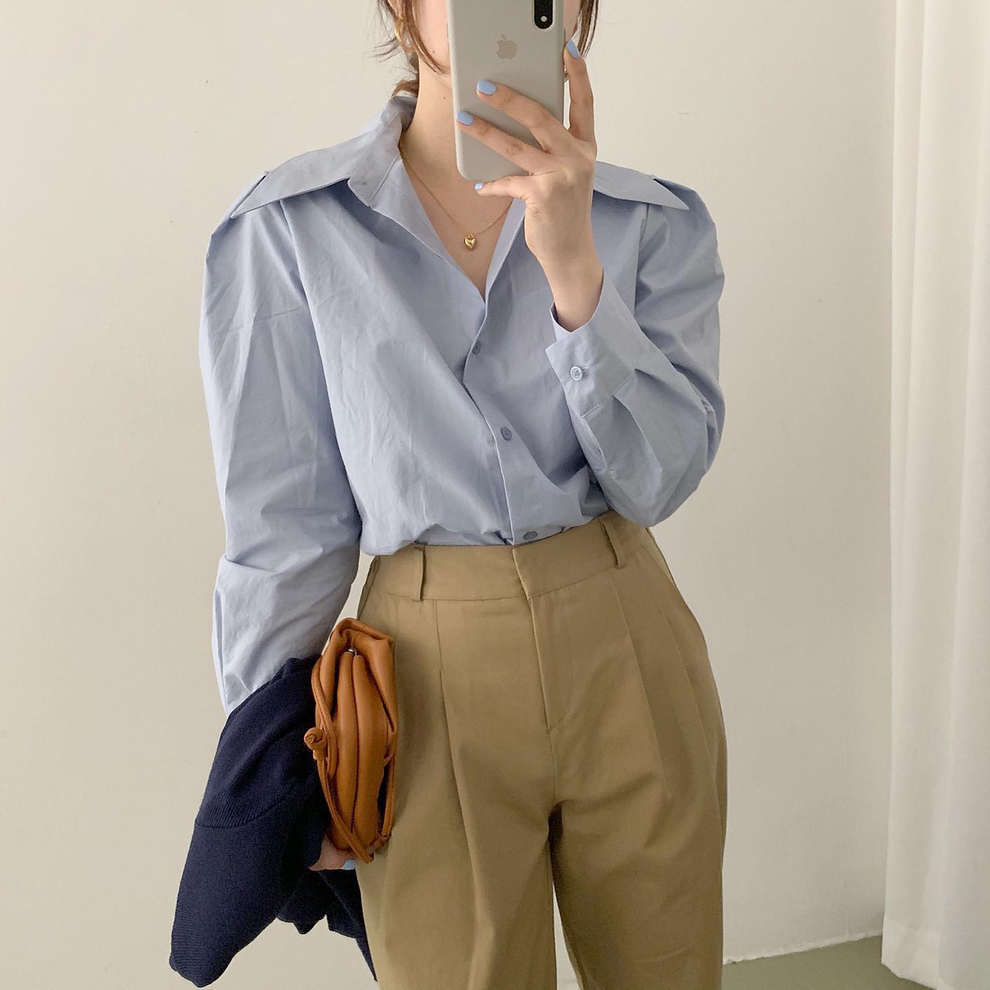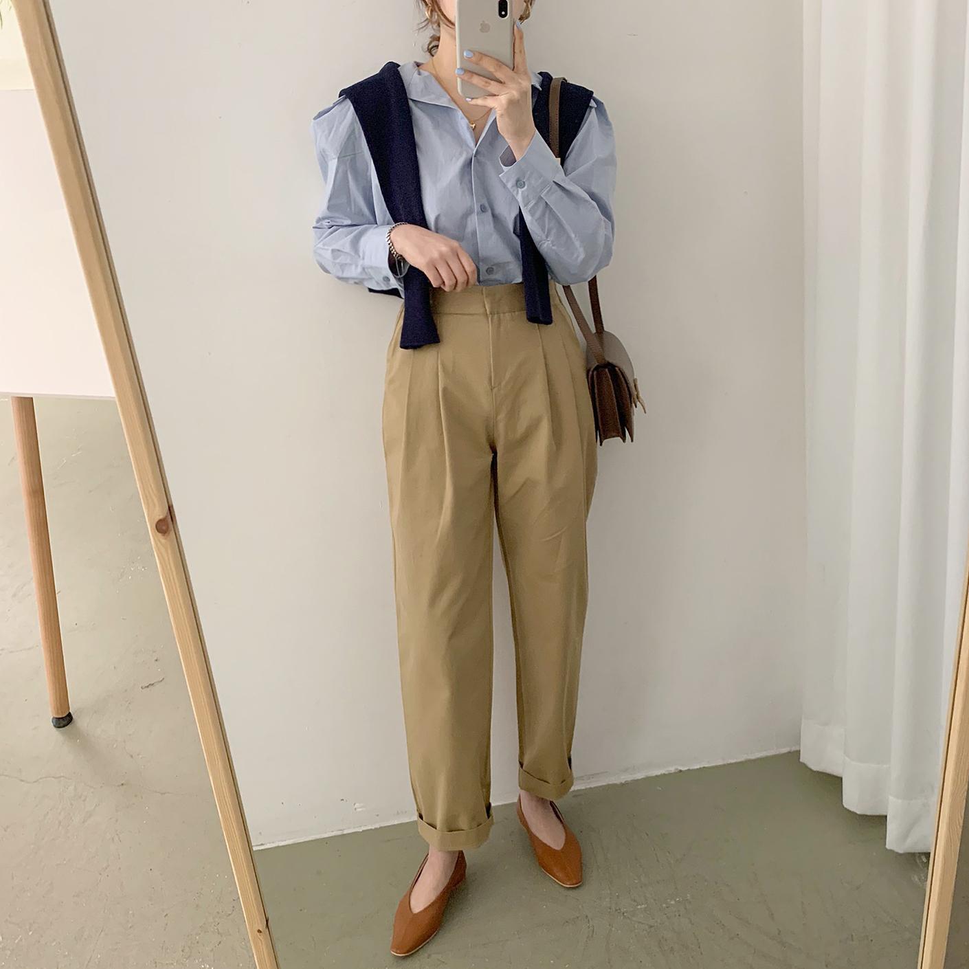 オータムスリーブシャツ スタンダードハイウェストウェスト レトロ 秋物 韓国婦人1229236091