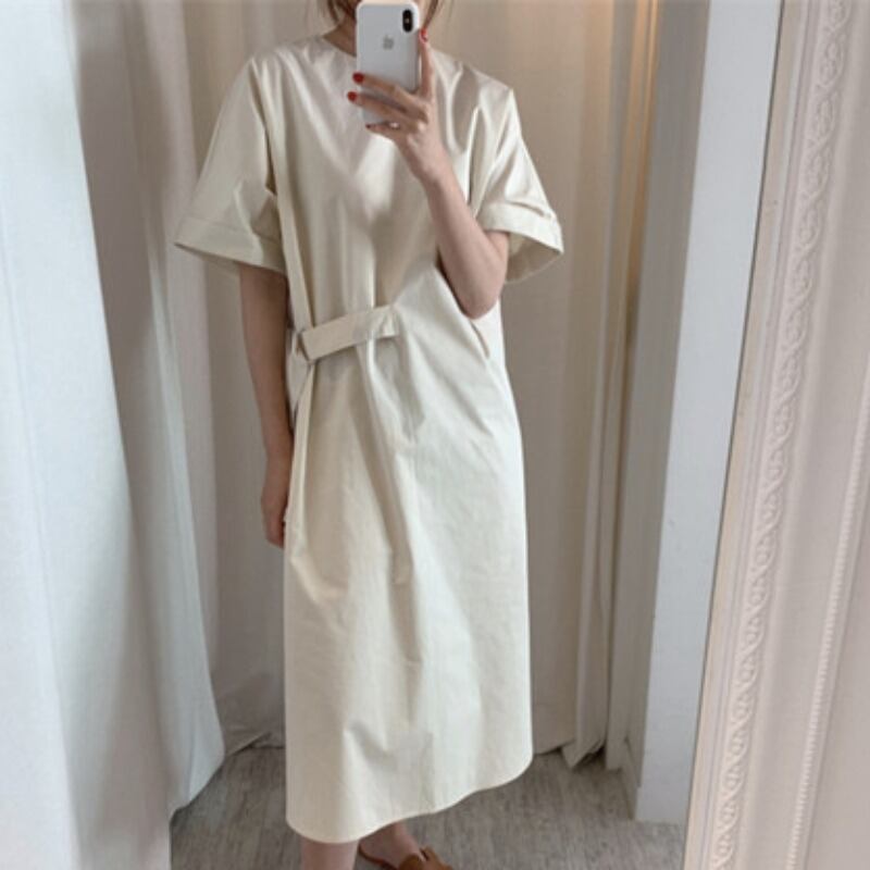ラウンドネックサイドレースウェスト薄手ロングドレス レディース Oネック 韓国婦人34368992804