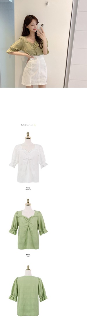 プリーツVネックブラウス サマーソリッド カラーシャツ 大人ガーリー スウィート キュート カジュアル 夏物 ソリッドカラー 韓国婦人63722554020