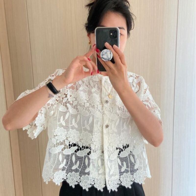シャツ ルーズレーストップス サマーストラップ 夏物 韓国婦人29588825711