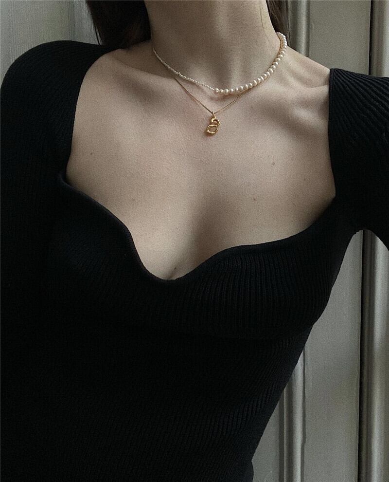 サマースタンダードスタイルカラースリムショートニットトップス レディース レトロ 夏物 スクウェア 韓国婦人83389343978