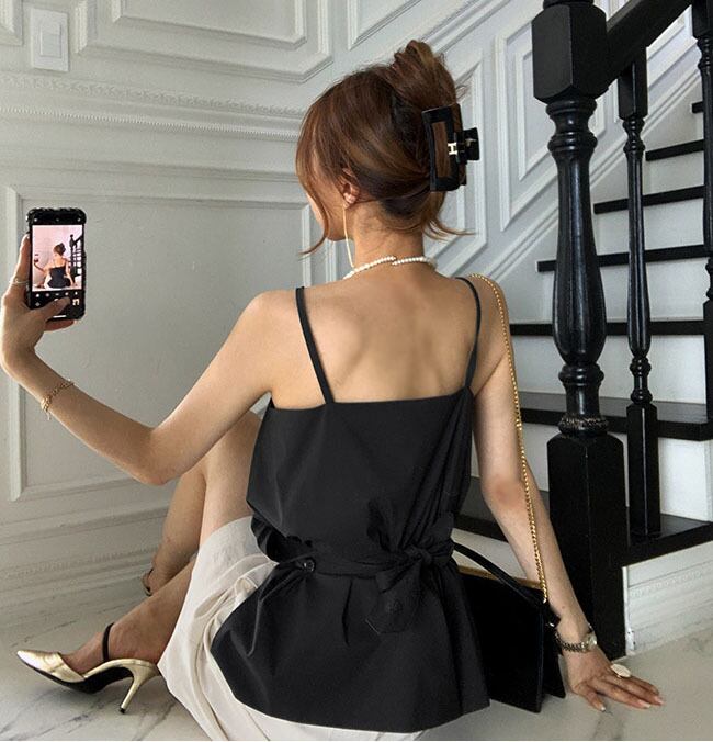 サマーVネックウェストスタイルブラウス 夏物 韓国婦人83892355022