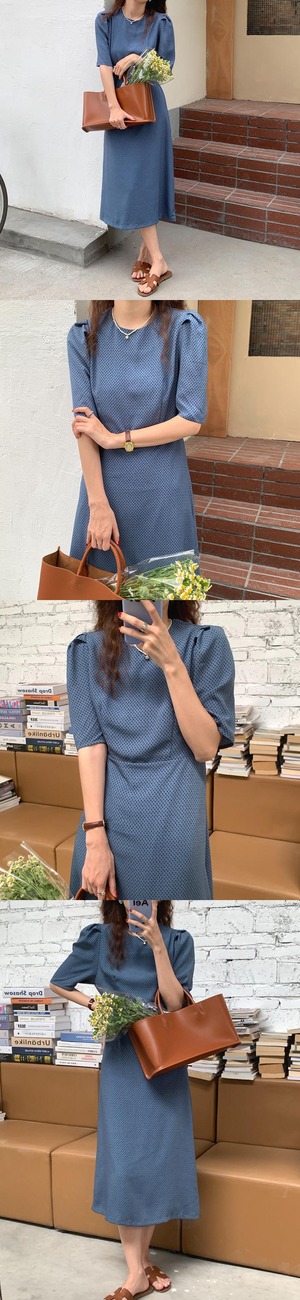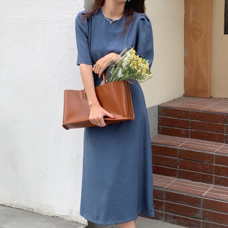 スタンダードスリーブラウンドネックドレス 薄手ロングスカート サマー レトロ 夏物 Oネック 韓国婦人72888053070