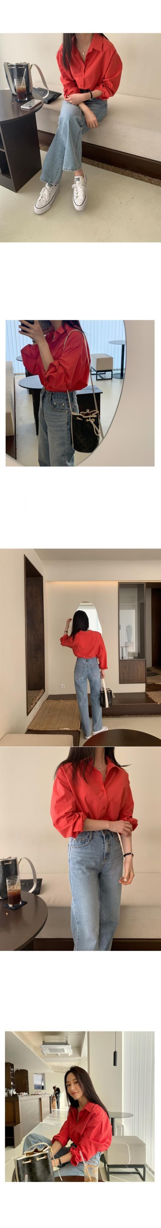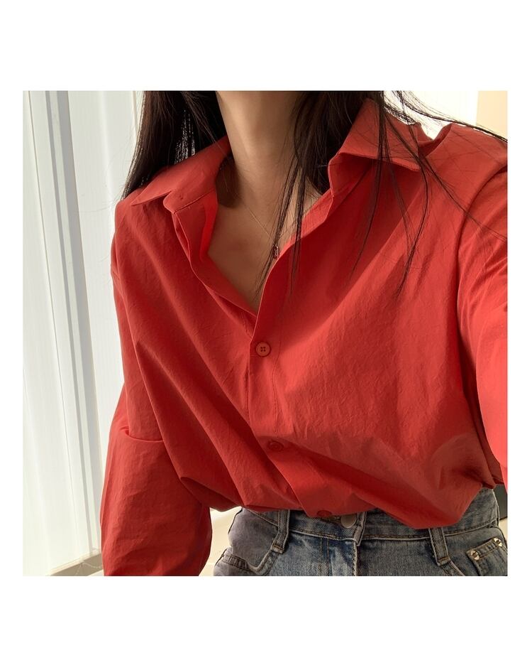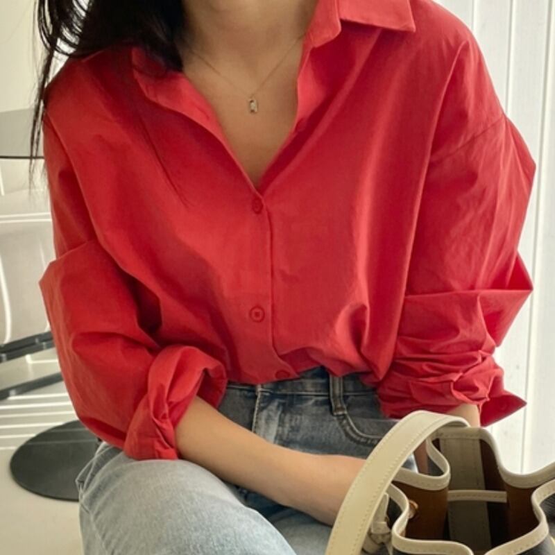 スプリングホワイトスタンダードレッドルーズシャツ カジュアル薄手ジャケット レディース ロング コットン レトロ 春物 韓国婦人64158586132