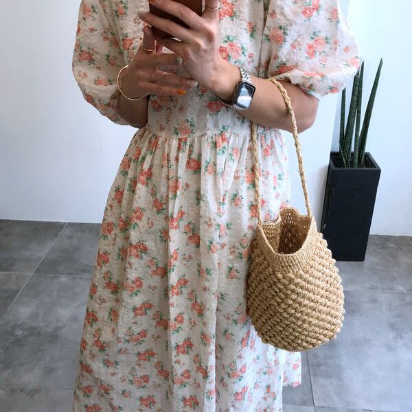 サマーフローラルドレス ラウンドネックスリーブルーズロングスカート ピンク 大人ガーリー スウィート キュート カジュアル 夏物 花柄 Oネック 韓国婦人65579072528