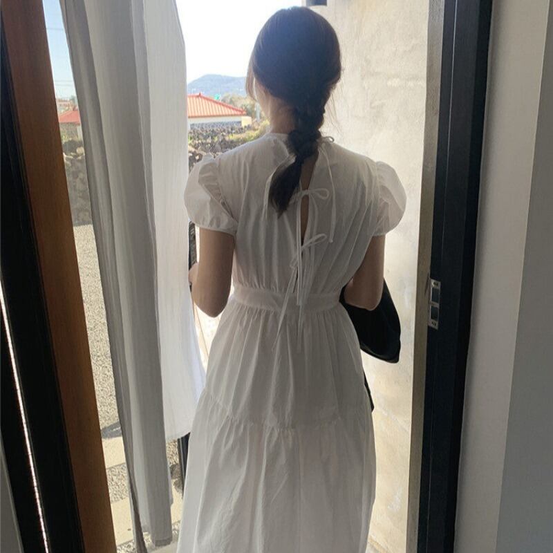 ドレス クロスバックストラップ ホワイトロングスカート スプリング 春物 サマー 夏物 韓国婦人63158826554
