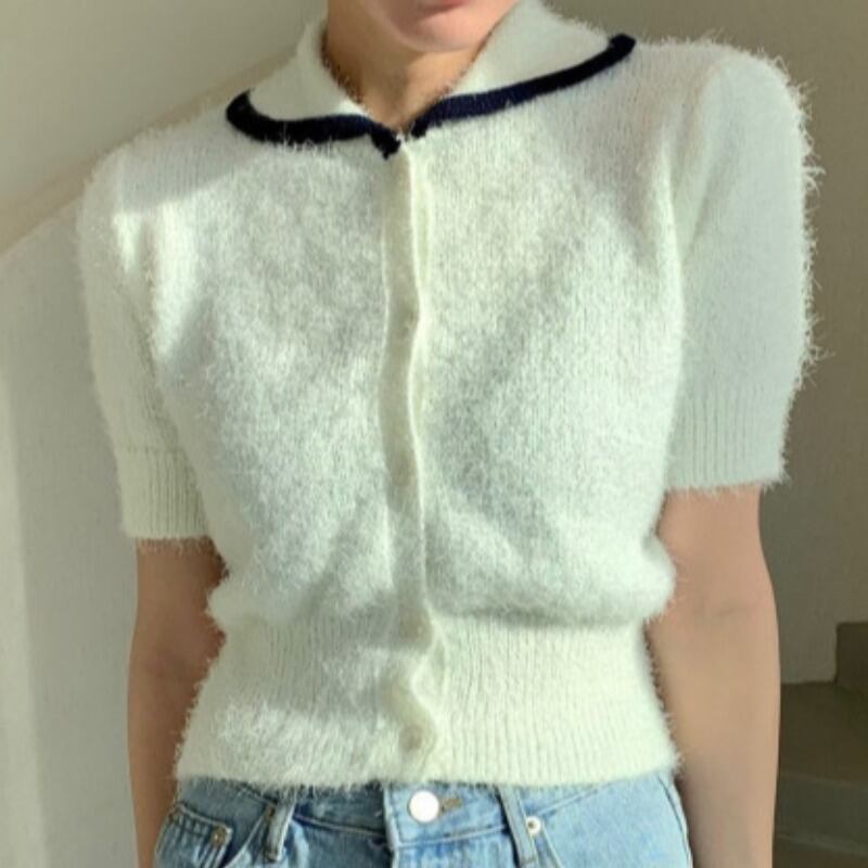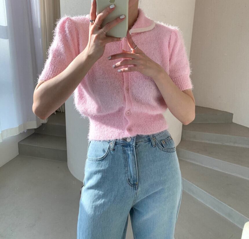 ニット 薄手カラースリムカーディガンサマークロップドトップス 夏物 韓国婦人15360968857