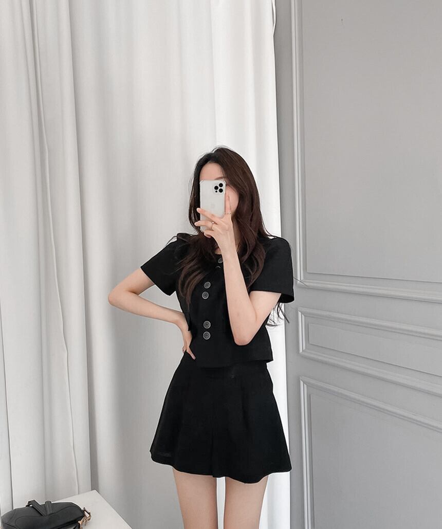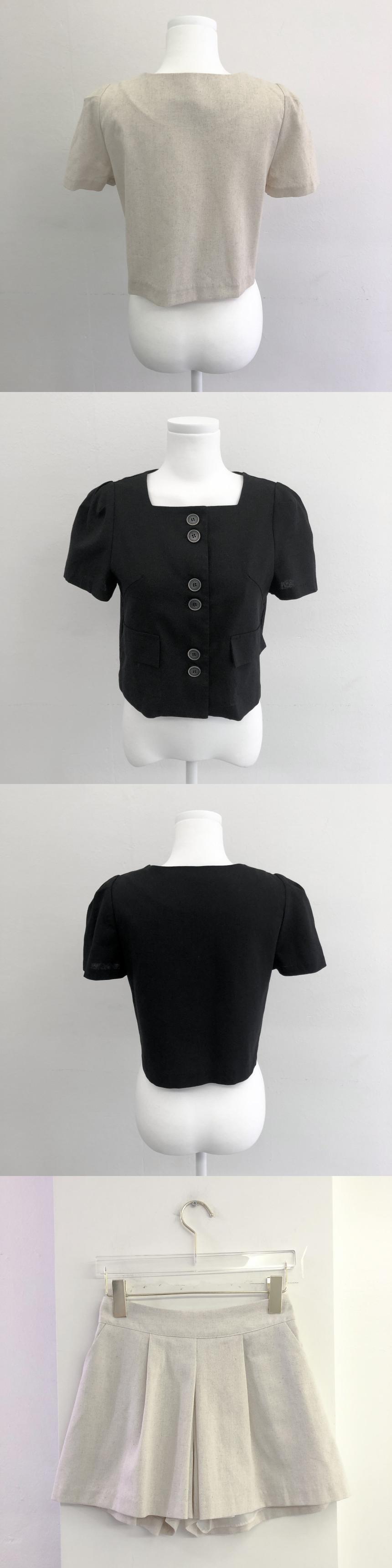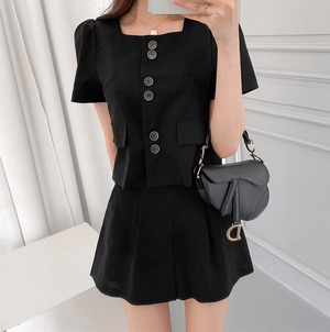 サマースタンダードシャツ トップス バックストレッチウェストプリーツショーツ レトロ エラスティック 伸縮 夏物 ブルマー 韓国婦人55255446004