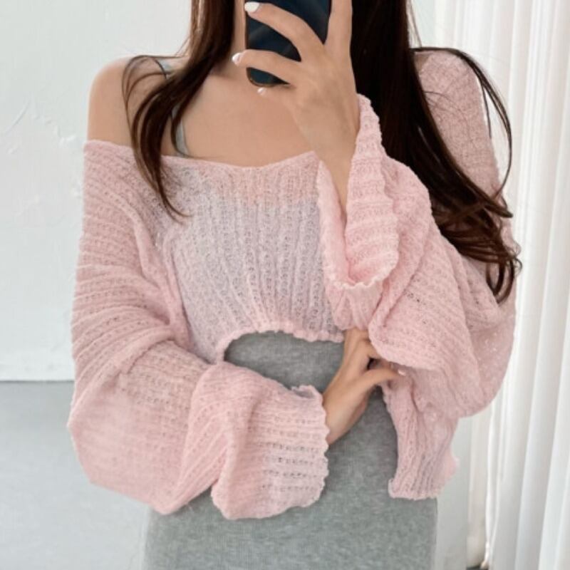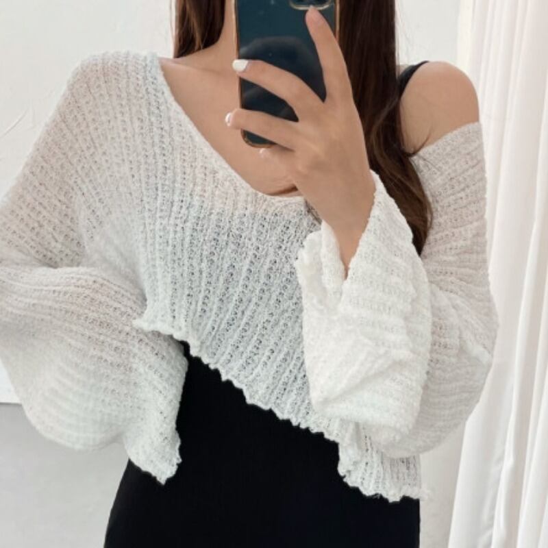 サマースタイルVネックショートブラウス セーター レディース ロング 夏物 韓国婦人34492677457