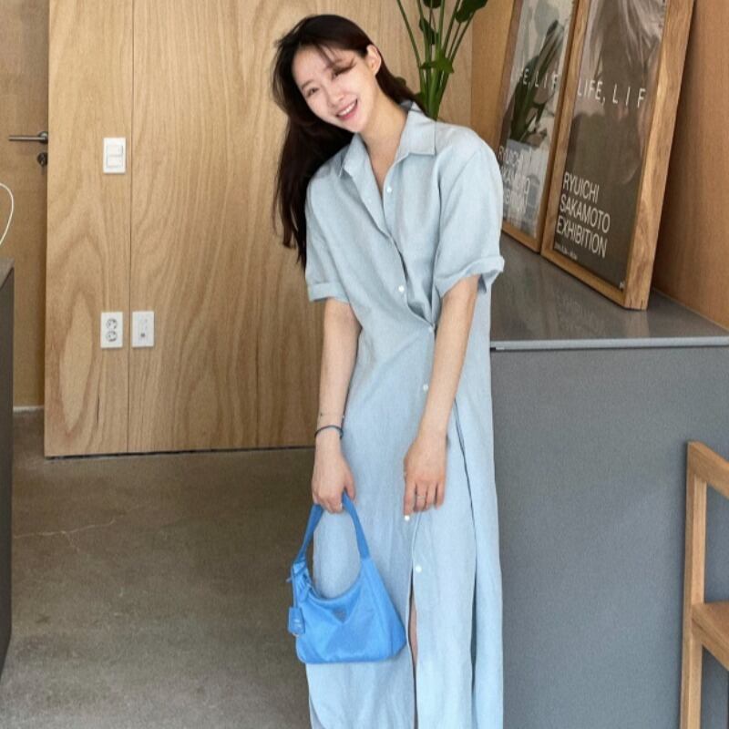 サマーバックル薄手ロングシャツ ドレス 夏物 ピュア 韓国婦人54774322982