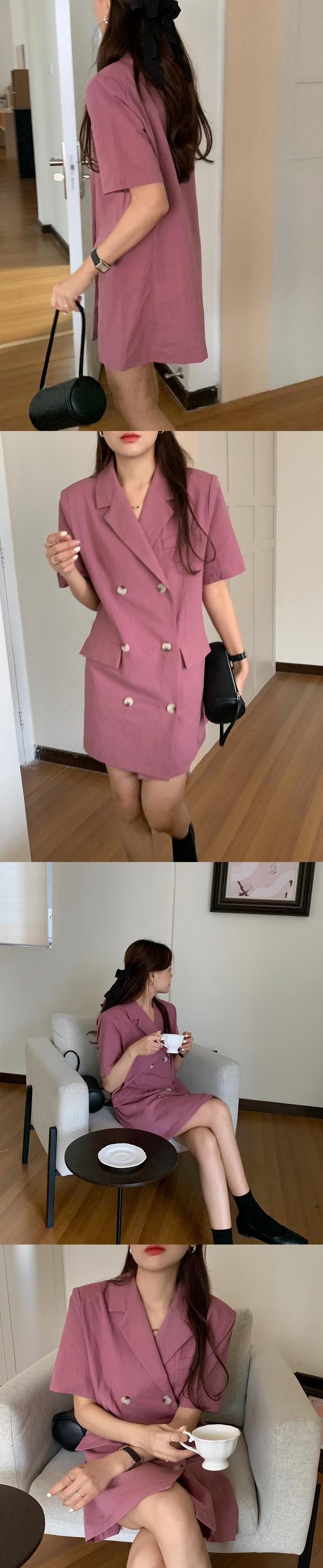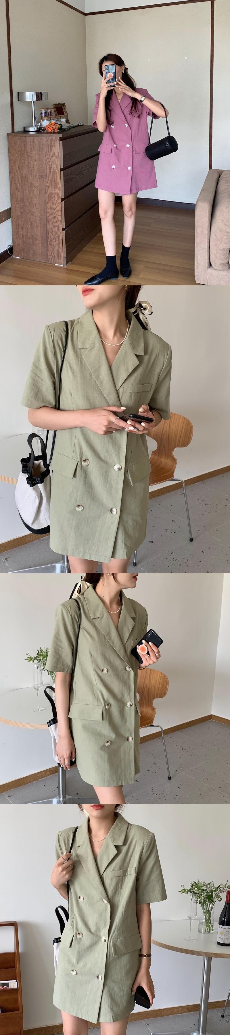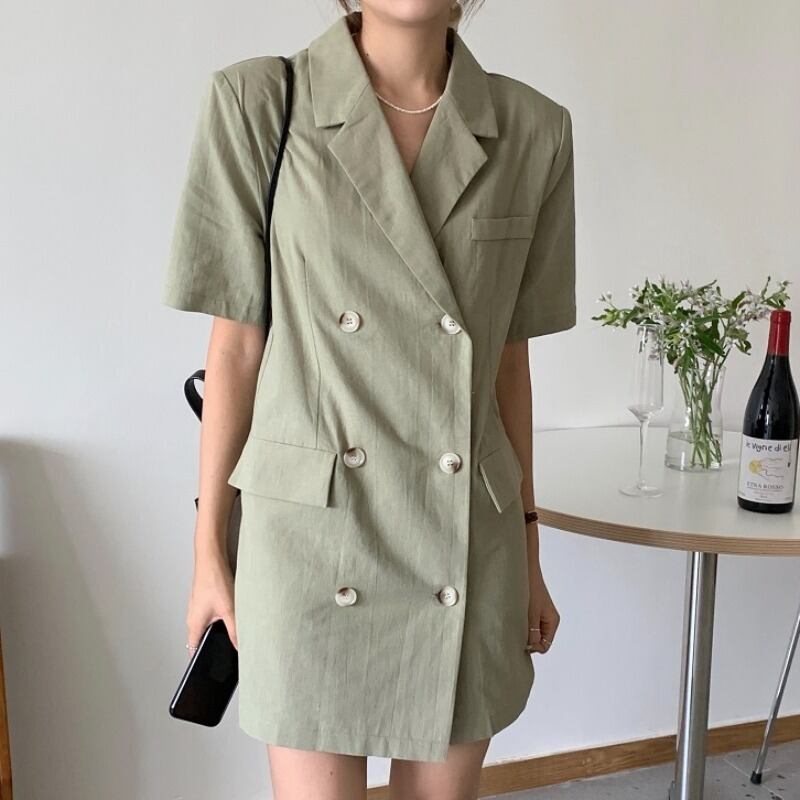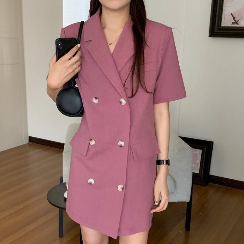 カラーダブルブレストドレス サマーカジュアルルーズスリムスカート 夏物 韓国婦人54108201247