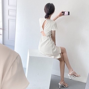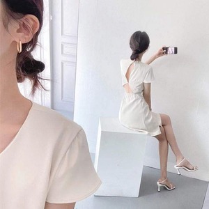 サマーラウンドネックバックウェストドレス ショートスカート 夏物 Oネック 韓国婦人22356452521