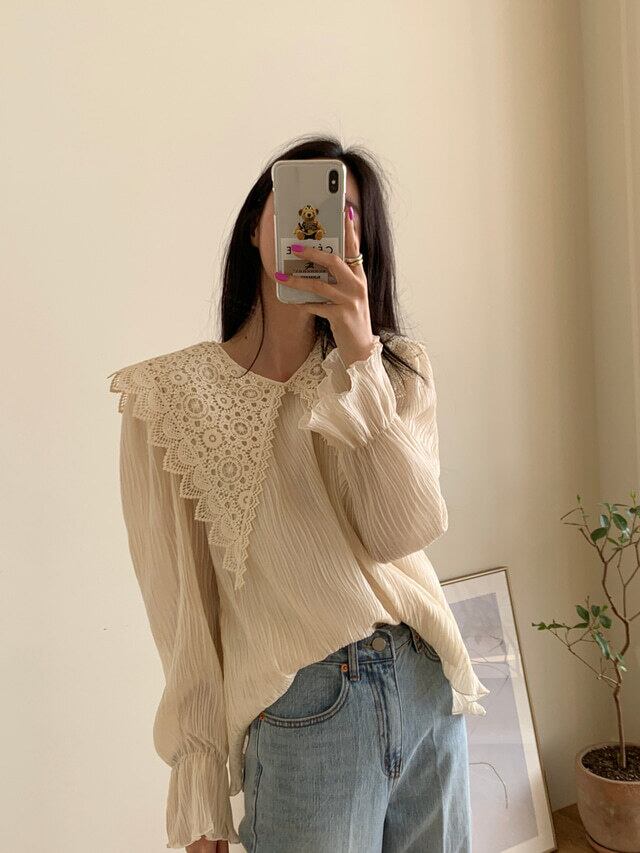シャツ レーススタイルスリーブシフォントップス 大人ガーリー スウィート キュート カジュアル 韓国婦人28747167236