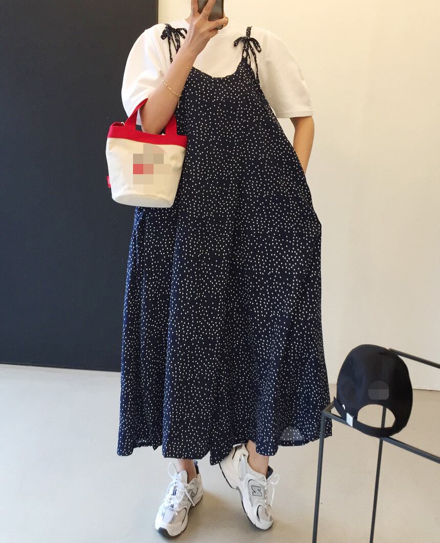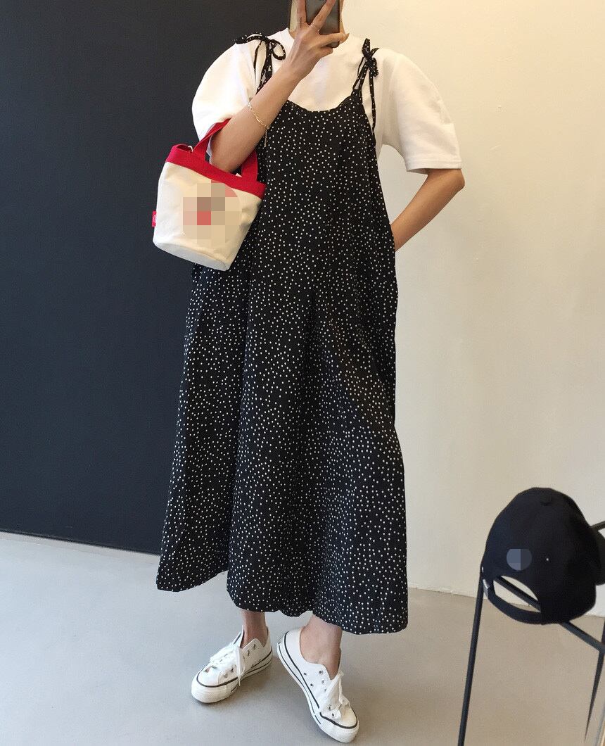 サマーホワイトラウンドネックスリーブTシャツ ルーズ水玉スカート ドレス 夏物 Oネック 韓国婦人39657002928