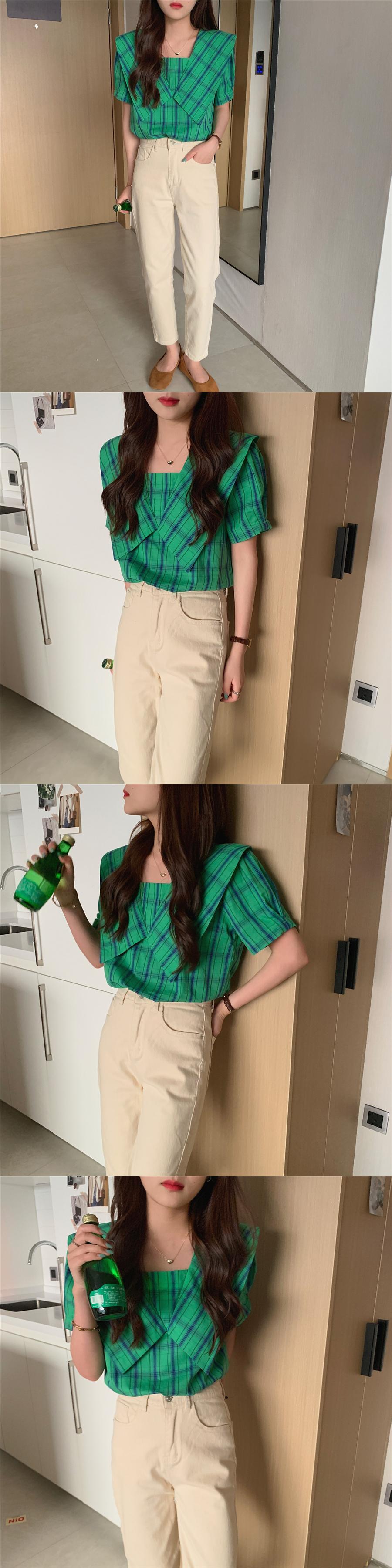 サマースタンダードルーズ格子柄シャツ トップス レディース レトロ 夏物 韓国婦人62185818408
