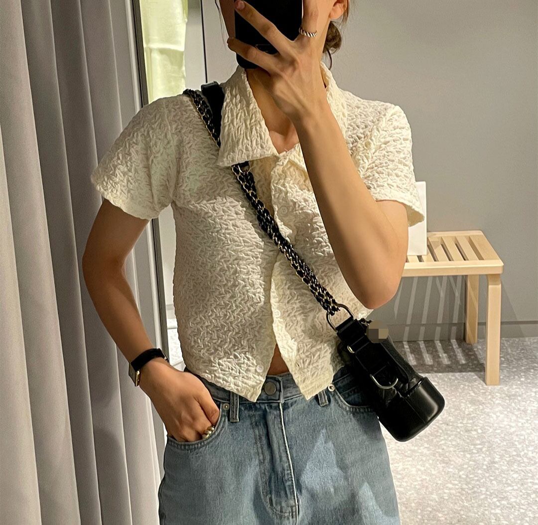 サマーショートシャツ トップス レディース 夏物 韓国婦人60136152336