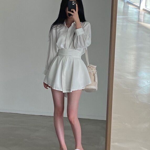 サマーバックウェストシャツ シフォンAラインスカート パンツ レディース 夏物 韓国婦人39464251907