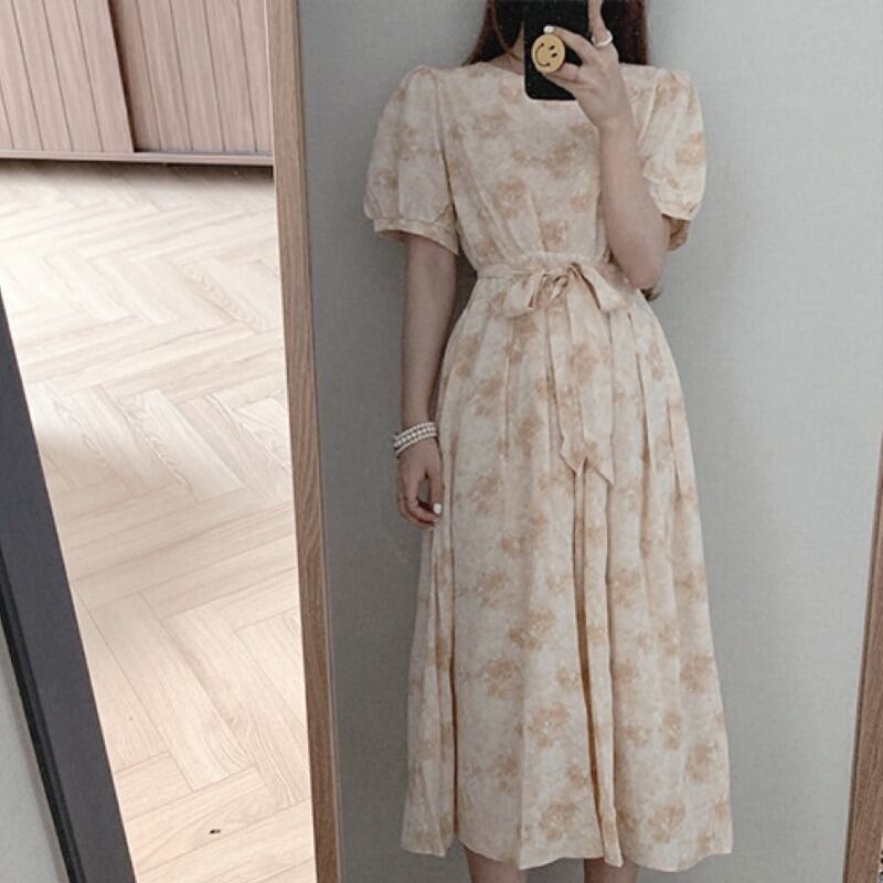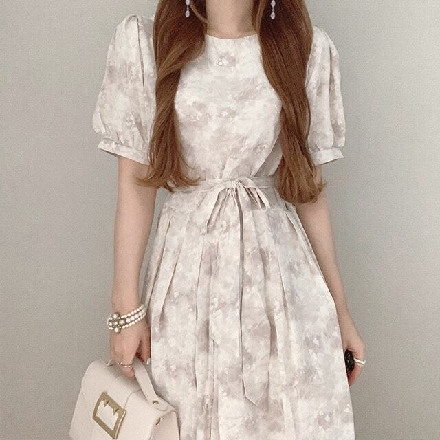 フローラルスリーブドレス サマーウェストスカート 夏物 ハーネス ベルト 花柄 韓国婦人89492424806