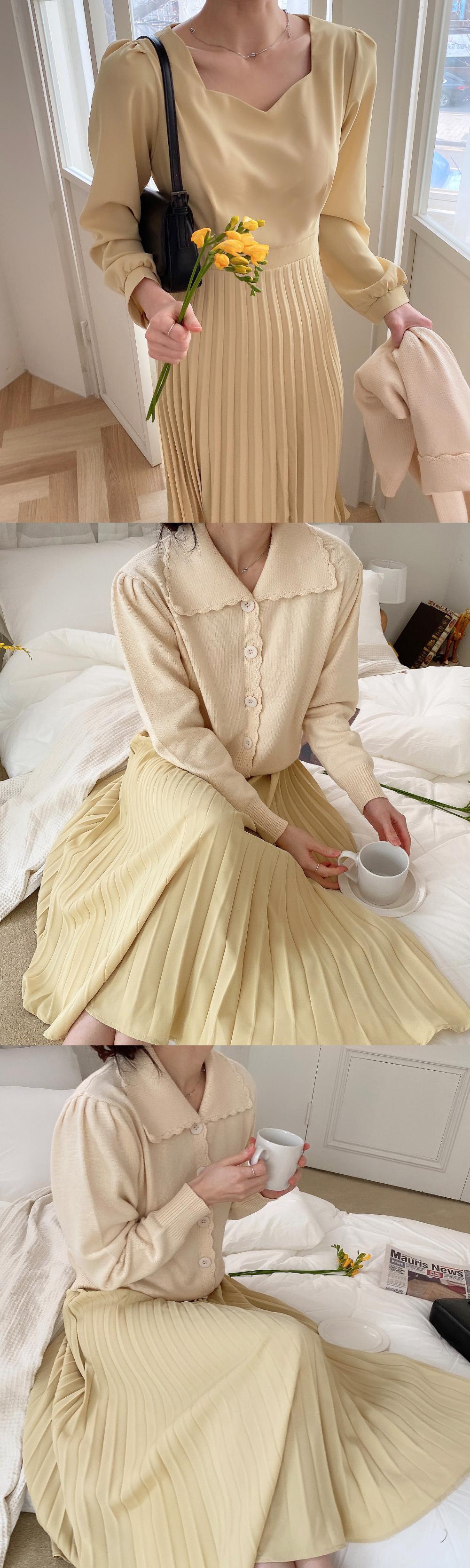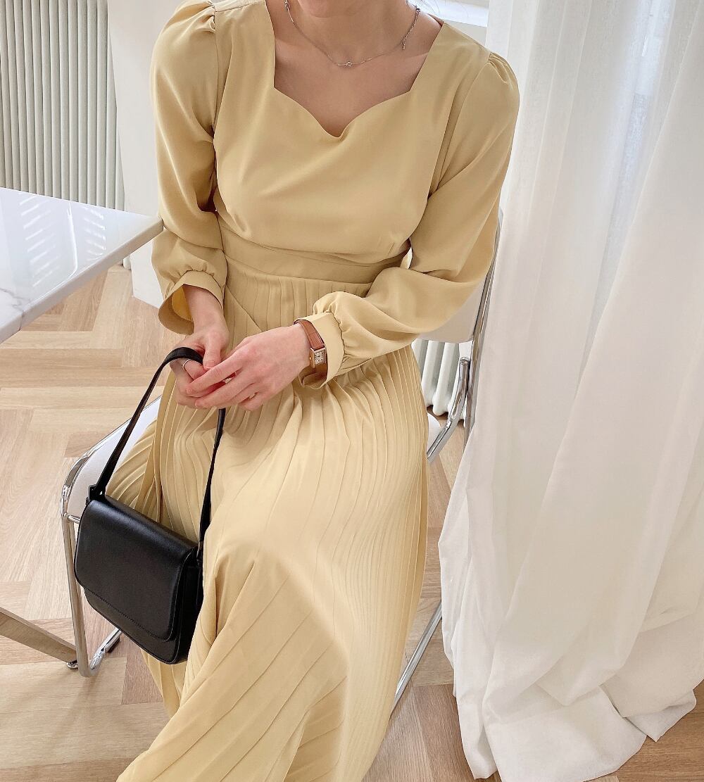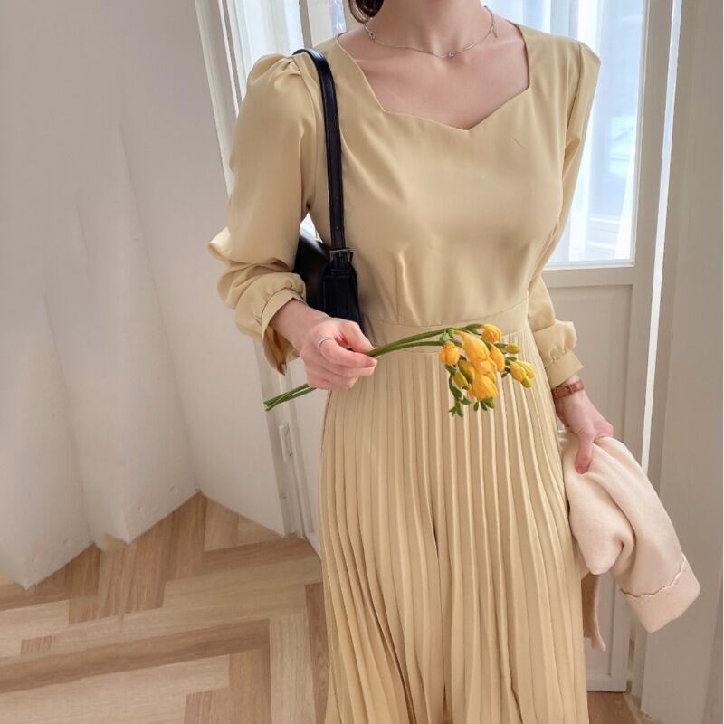 ドレス スプリングスタイルイエローハートカラーウェストプリーツロングスカート レディース 春物 韓国婦人60570837144