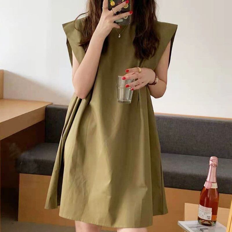 サマーミニマリストスタイルラウンドネックルーズノースリーブドレス 夏物 Oネック 韓国婦人78951210334