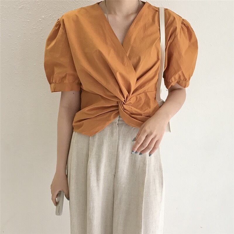 トップス サマークロスVネックスタイルスリーブシャツ レース 夏物 韓国婦人63750585640