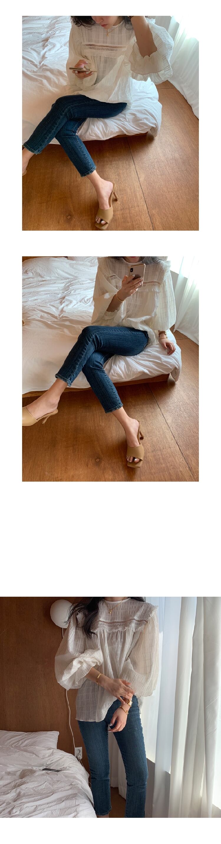 サマーラウンドネックスリーブレースプリーツシフォンシャツ トップス レディース ランタンスリーブ 夏物 Oネック ステッチ 韓国婦人59885567134