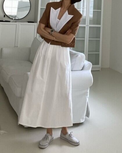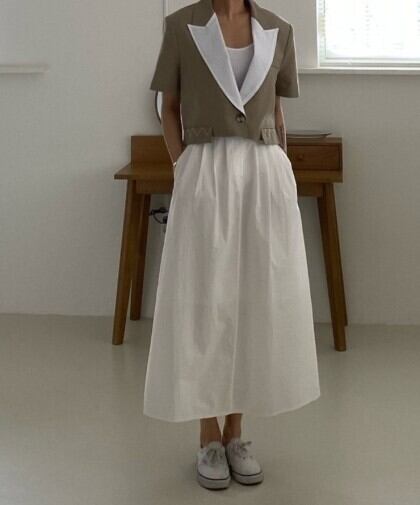 サマーショートコート ダブルポケットホワイトスカート 夏物 韓国婦人58837569779