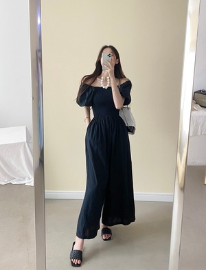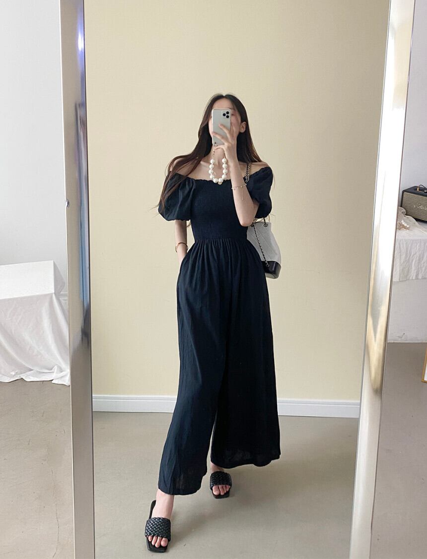 サマープリーツカジュアルハイウェストジャンプスーツ オールインワン レディース 夏物 韓国婦人81417202341