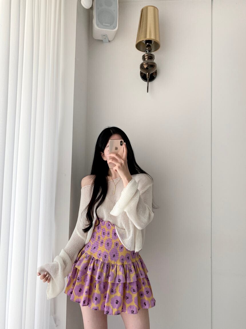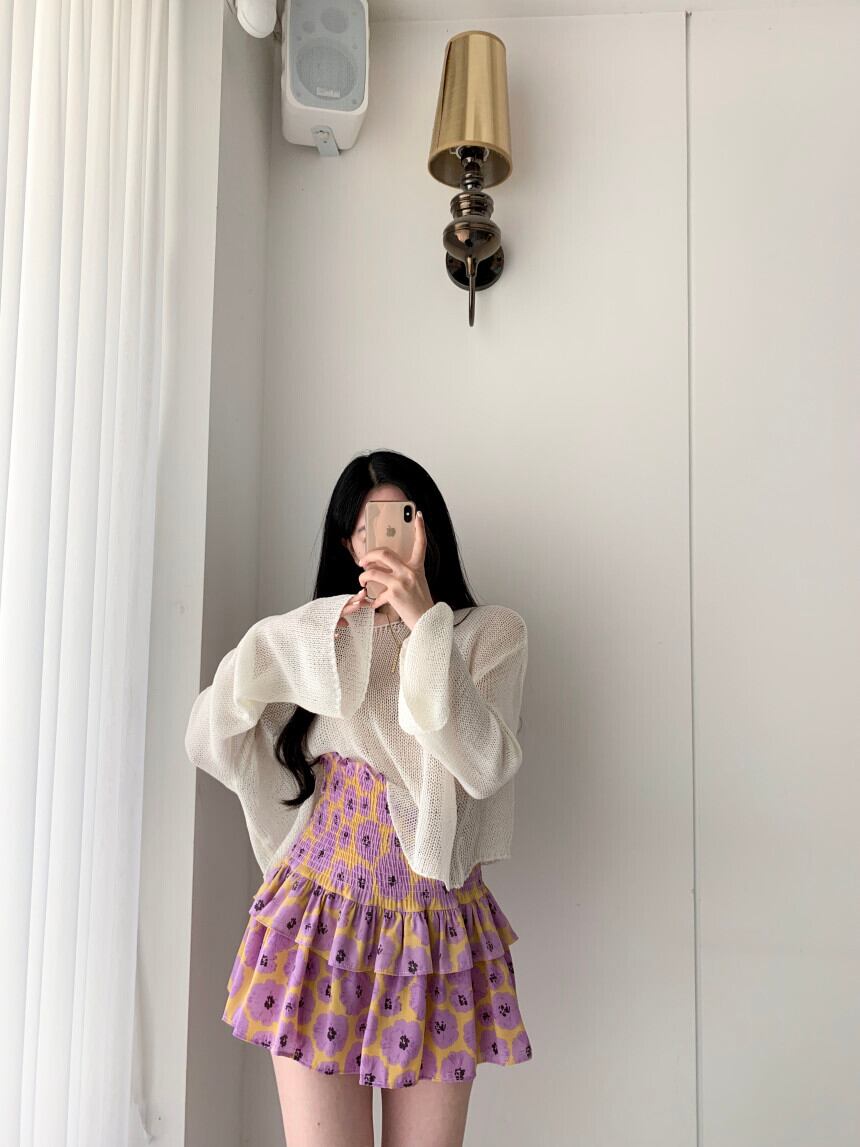 サマーセーター プリント柄スカート レディース 夏物 韓国婦人96285141246