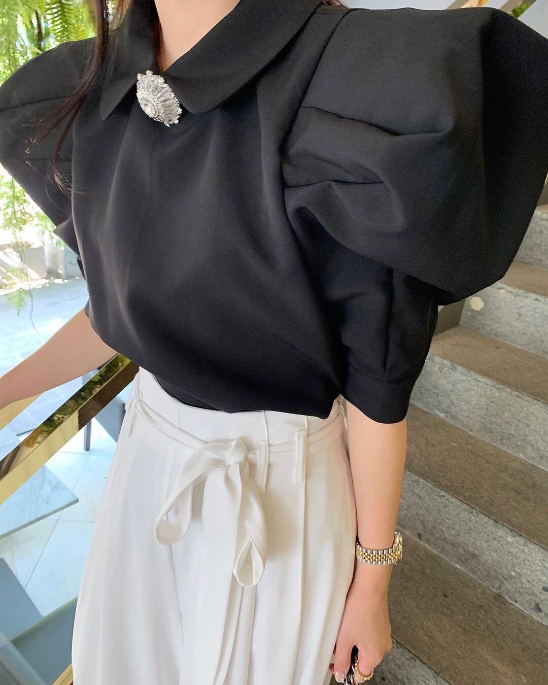 サマーカラーラインストーンスリーブシャツ プリーツスカート 夏物 韓国婦人39549453353