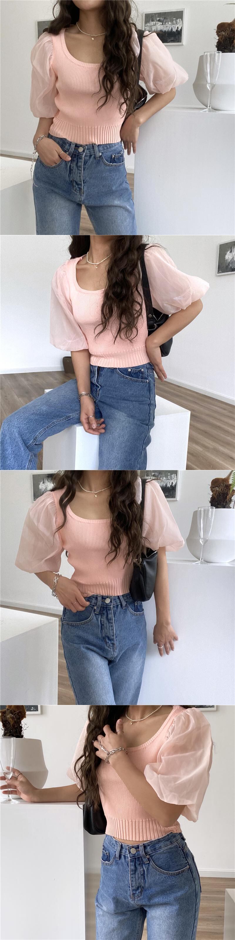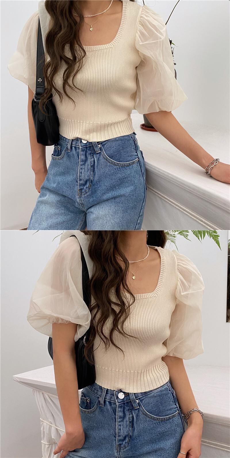 ニットセーター スリムサマーカラースタンダードスリーブ薄手ショートトップス レディース レトロ 夏物 スクウェア 韓国婦人36109035558