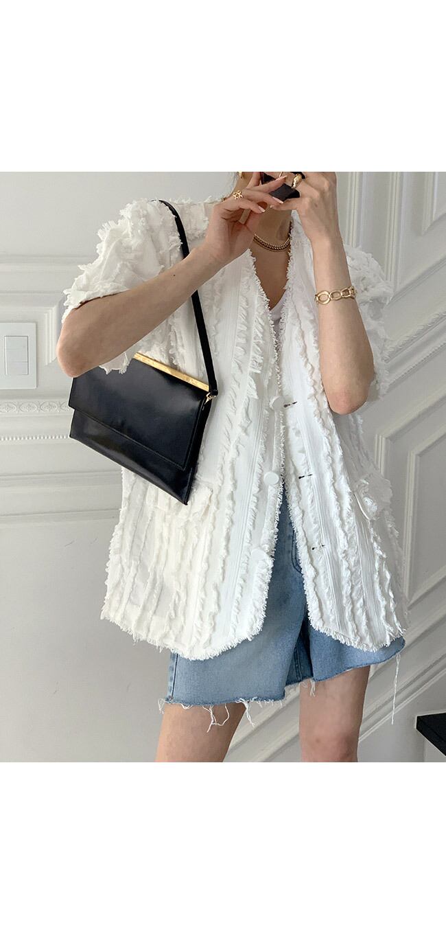 サマースタンダードカジュアルVネックカーディガンジャケット レトロ ストリート 夏物 韓国婦人7693517951