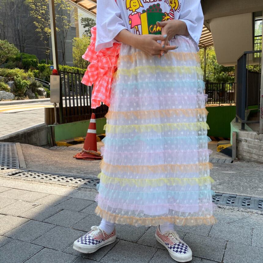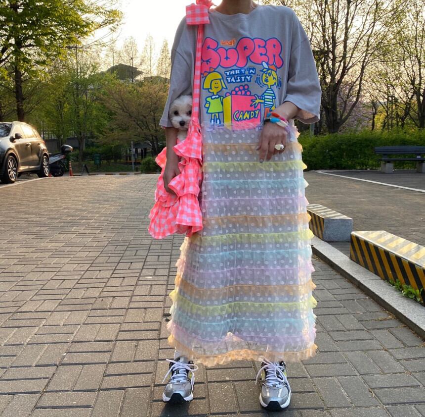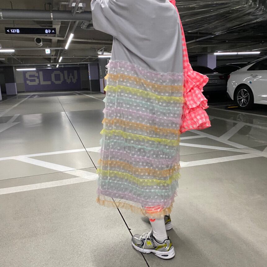 メッシュドレス サマープリントカジュアルルーズロングスカート 大人ガーリー スウィート キュート 夏物 ステッチ 韓国婦人4780703404