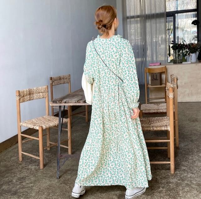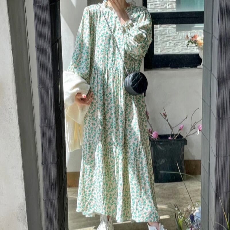 サマーフローラルロングドレス スタンダードルーズシフォンスカート レトロ 夏物 花柄 韓国婦人67343576431