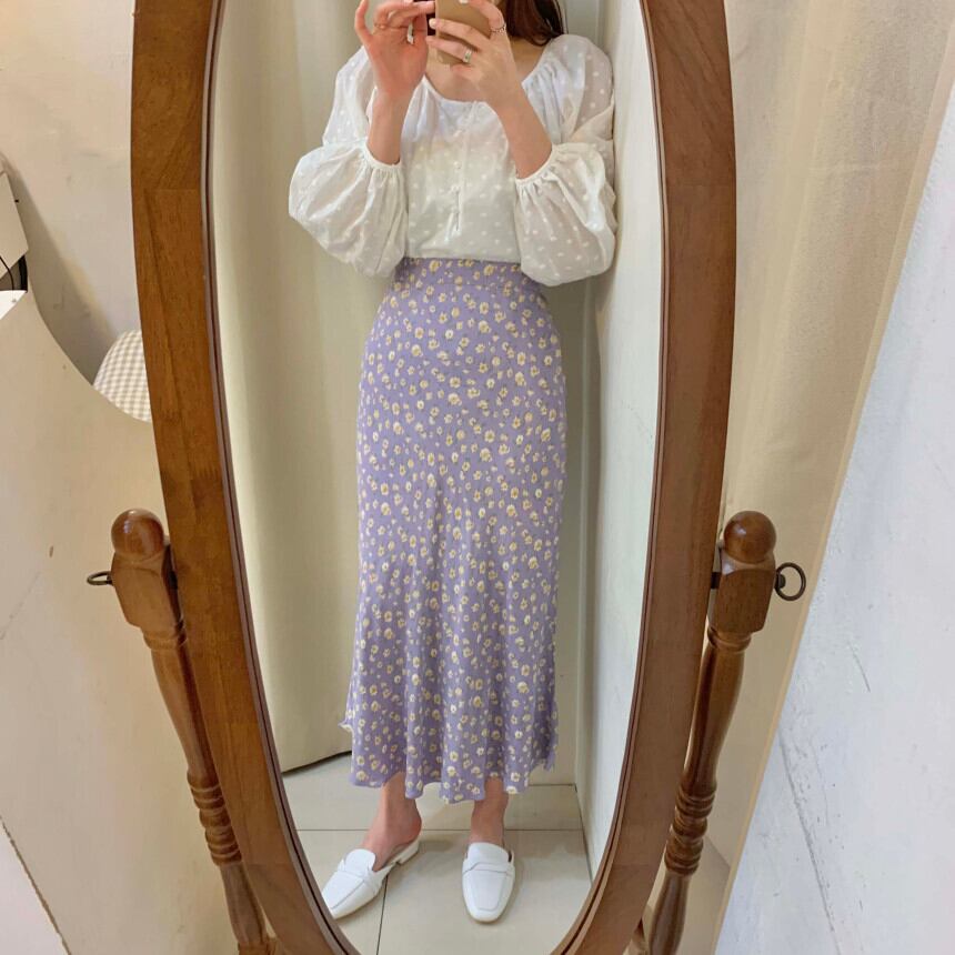 スプリングカラーホワイトスリーブシャツ フローラルドレス レディース 春物 花柄 パープル スクウェア 韓国婦人76468098945