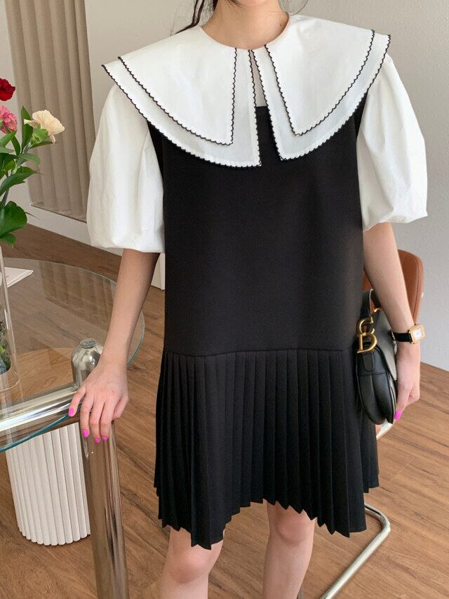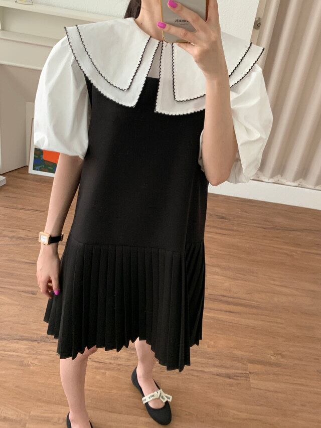 サマースリーブシャツ プリーツルーズスカート ドレス 夏物 韓国婦人74155576505